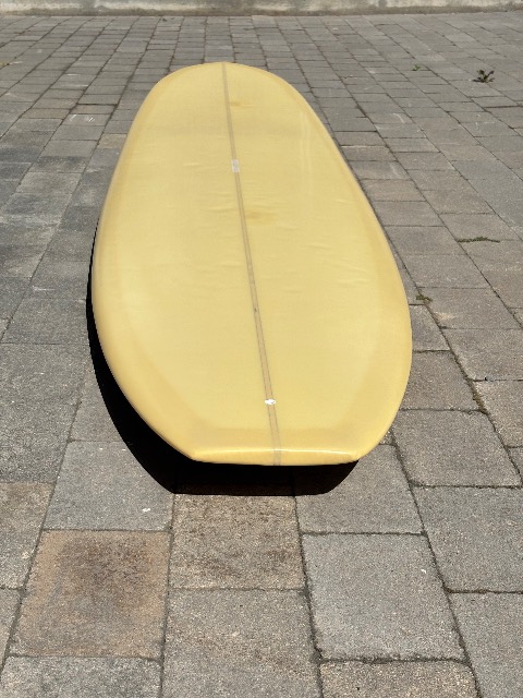Excellent condition Terry Holster Surfboard (SSD) Step Deck model. Lightly used, deck is super clean and just a handful of light pressure dings. Belly is even cleaner with just a few tinny scattered pressures and a few scuffs and scrapes. There are two previous professional repairs made on the deck both are visible in the photos. Both repairs were don’t perfectly; super flush, smooth and watertight. Other than these minor things the log is in excellent condition. Ready to wax and glide!
